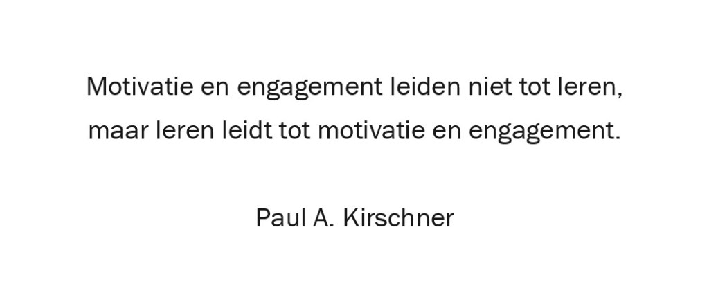 Veel scholen kampen met, zoals zij dat zelf omschrijven, een gebrek aan motivatie bij de leerlingen. Dit afbrokkelen van motivatie is al enige tijd gaande maar de door COVID verstoorde jaren hebben het in een stroomversnelling gebracht en het motiveren van leerlingen staat daardoor bij veel scholen hoog op de kaart. In de haast om deze uitdaging te tackelen worden er allerlei activiteiten opgetuigd en koerswijzigingen aangebracht die het onderwijs in de scholen leuker, dichter bij de leerling en betekenisvoller moet maken. Schools onderwijs moet passend gemaakt worden aan het kind en keuzevrijheid is hierin een terugkerend recept. We weten echter ook dat leren leidt tot motivatie voor leren, en niet andersom.