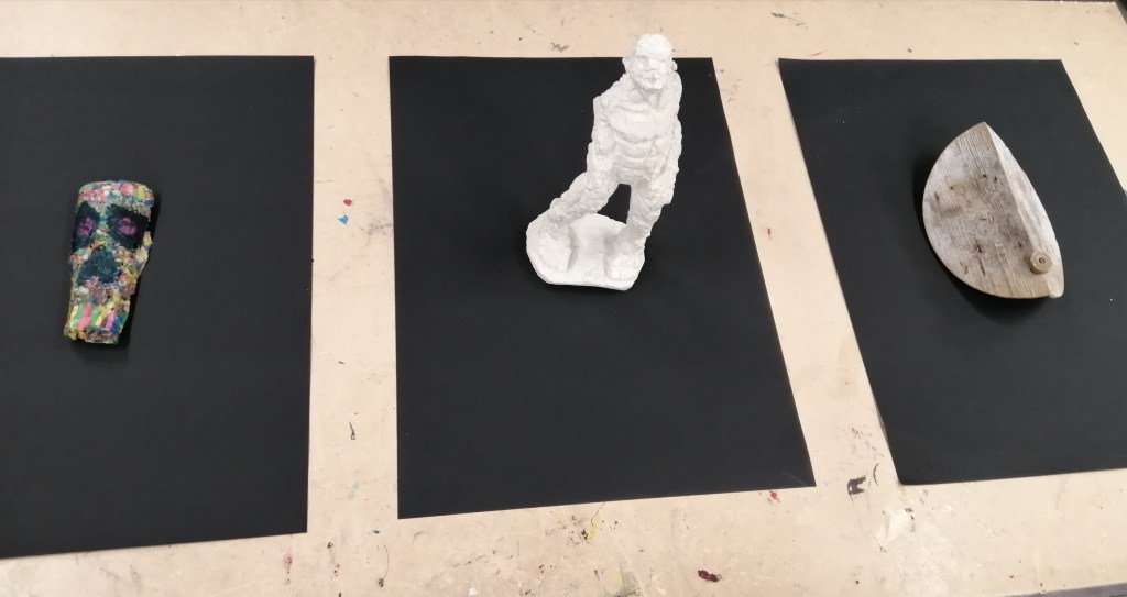 Bij Kunstvakken zetten we sterk in op procesmatig leren werken maar bij dit thema is het de bedoeling dat de leerlingen precies het tegenovergestelde gaan doen; starten vanuit het materiaal en zonder vooropgezet plan.